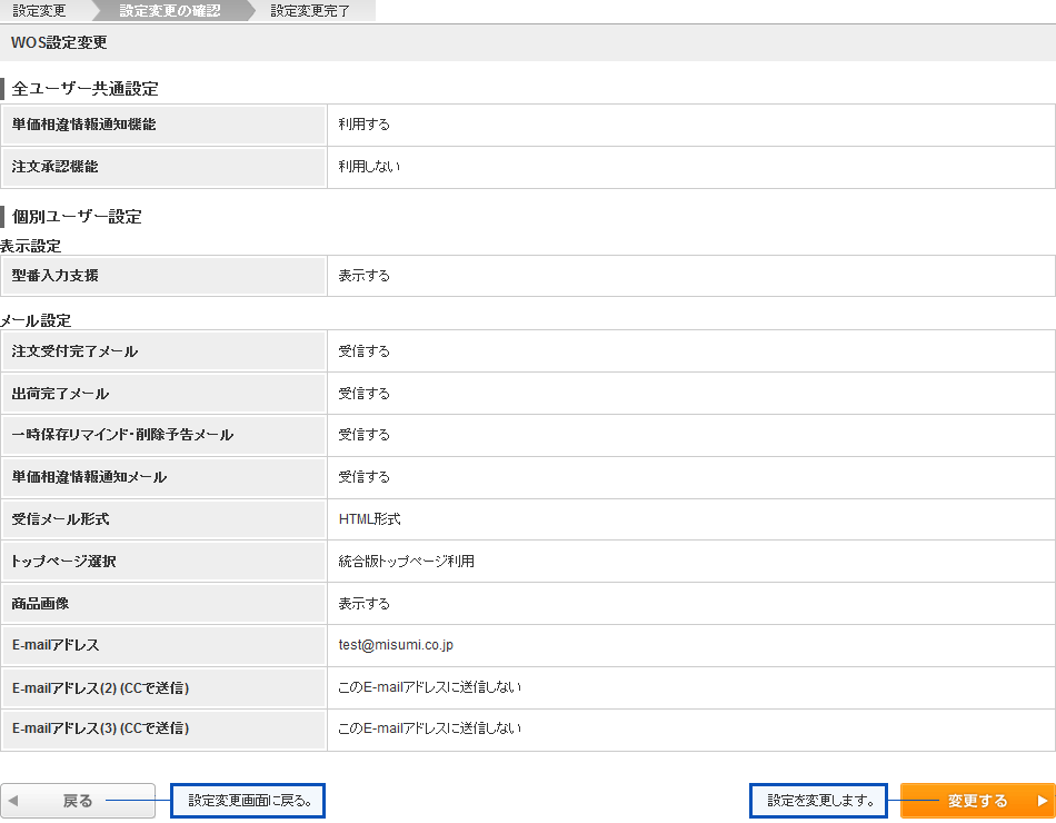 内容に問題ない場合は、[変更する]ボタンをクリックしてください。設定変更が完了します。