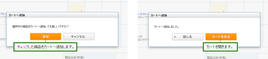 チェックした商品をカートへ追加します。