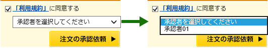 注文入力時は通常と変わりませんが、注文確認画面では承認者を選択する必要があります。