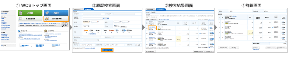 注文履歴検索から検索条件を指定して検索して表示することができます。